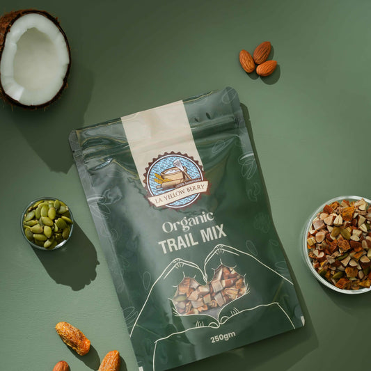 Trail mix is a healthy, nutrient-packed snack made from a mix of nuts, seeds, dried fruits, and other add-ins. It's a convenient option that provides a good balance of protein, healthy fats, and carbohydrates, making it perfect for on-the-go snacking or a quick energy boost.